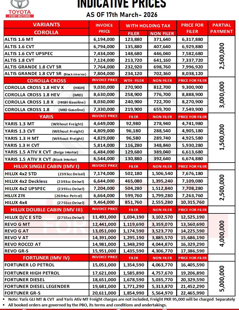 • Hilux/Revo = Rs.2,000,000   • Fortuner = Rs.3,000,000